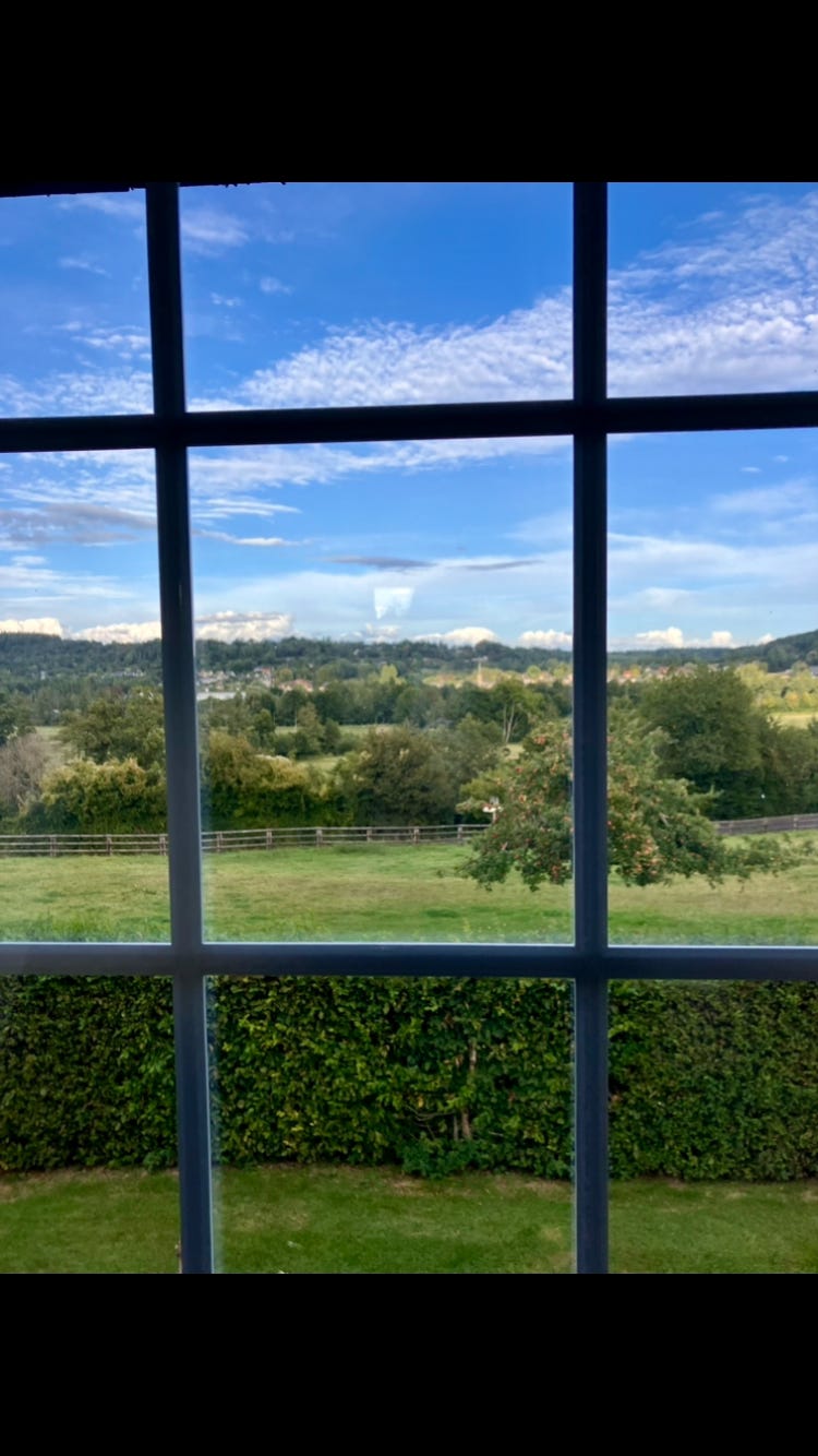 (La vue sur le Pays d’Auge de sa chambre à venir)